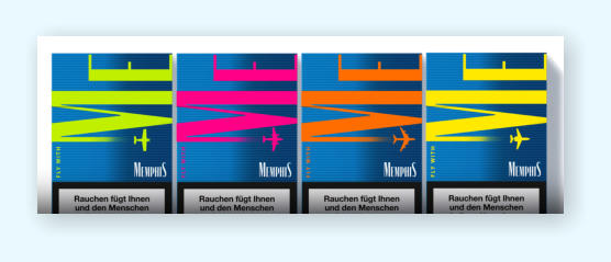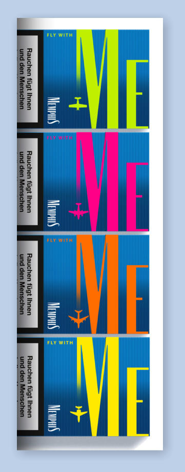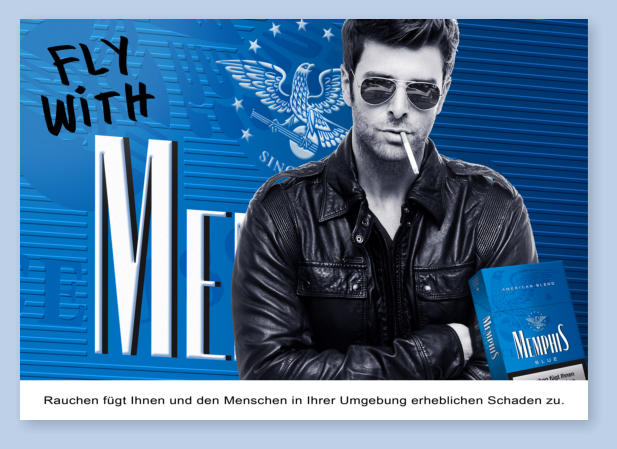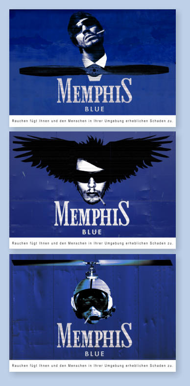 Kreation der MEMPHIS Blue Markenwelt und deren forlaufenden Anpassungen in einem extrem kompetitiven und sukzessiv limitierten Kommunikationsumfeld.Einsatzmittel: Kino, Outdoor, Print, Limited-Editions, Packungsdesign, Promotions, POS.